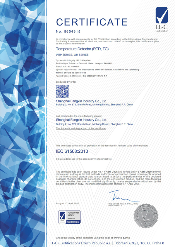 級精度產(chǎn)品制造計量許可證的極少數(shù)合法企業(yè)之一。并且率先采用了國際通用的分度號色標,從而使安裝在設(shè)備上的產(chǎn)品的分度號非常醒目,便于識別和更換,因此多年來受到熱工維檢人員的贊譽。